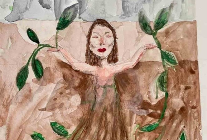 Beatriz Gutiérrez Müller acompañó su texto con una acuarela de su autoría titulada “¿Oyes a la Tierra?”.