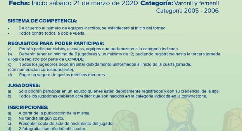 El Gobierno Municipal a través de la Comisión Municipal del Deporte (COMUDE) convoca a todas las escuelas secundarias, equipos y clubes de San Miguel de Allende a participar en el “3er. Torneo Intersecundario de Básquetbol”, que se llevará a cabo en las canchas del parque Benito Juárez.Los participantes deberán ser categoría 2005-2006 (rama varonil y femenil), el sistema de competencia se establecerá al inicio del torneo de acuerdo al número de equipos inscritos y se tendrán encuentros todos contra todos, a doble vuelta.