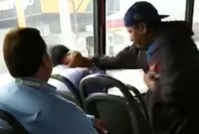 «Bájese a la v…», le grita molesto al hombre y al mismo tiempo que lo golpea en la cara y en la cabeza en repetidas ocasiones.