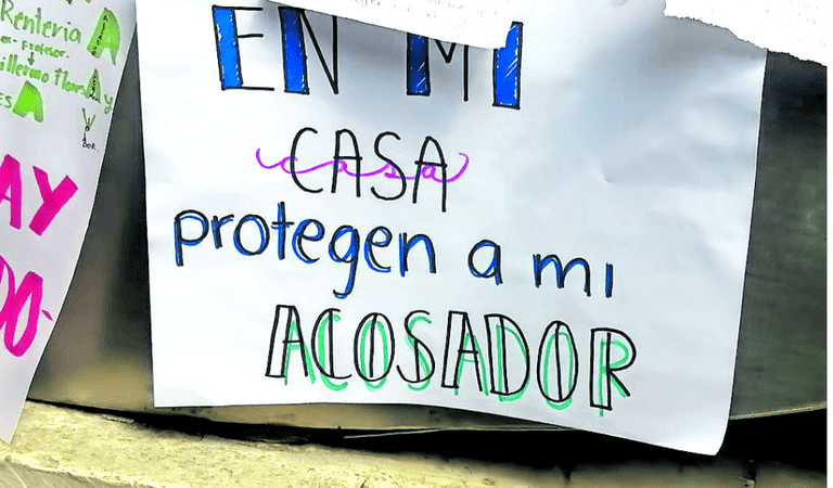 Algunas cartulinas mencionaron leyendas como “lucha hoy para no morir mañana”, “la maestra luchando también está enseñando”, “en mi casa protegen a mi acosador”, “Zenon Vargas dice que tuve relaciones con él,” cuando no fue así”, “Gerardo Rentería me dijo: si te pago me bailas”, “Héctor Mendoza el producto más importante para él son sus alumnas”, “Manuel Cervantes me tocó sin mi consentimiento en una fiesta e insinuó ver mis senos”, “José Manuel Vázquez me tocó sin mi consentimiento en el transporte público”, entre otro mesonajes.
