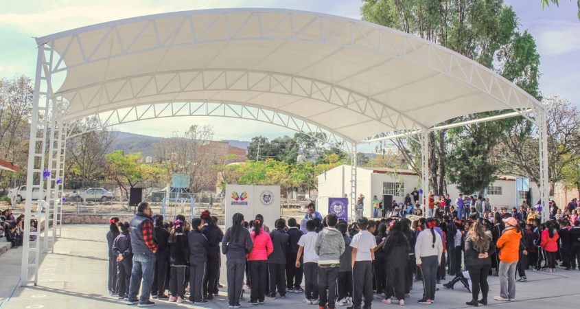 Dicho programa atiende la construcción y rehabilitación de calles, caminos, espacios deportivos y plazas públicas, donde en la mayoría de los casos, los vecinos ponen material y el gobierno la mano de obra. A la vez se integra con el programa de Infraestructura Educativa, a través de la construcción de techados de malla sombra/lonaria y bardas perimetrales.
