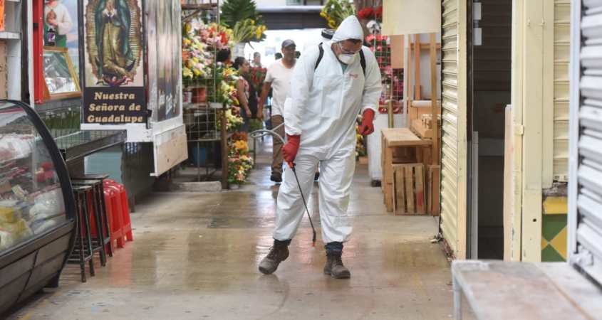 Gabriela Aguirre Macías, directora de Mercados, informó que el objetivo de la sanitización es concientizar a los comerciantes del mercado Hidalgo, para trabajar con las medidas de higiene adecuadas por la contingencia del coronavirus.