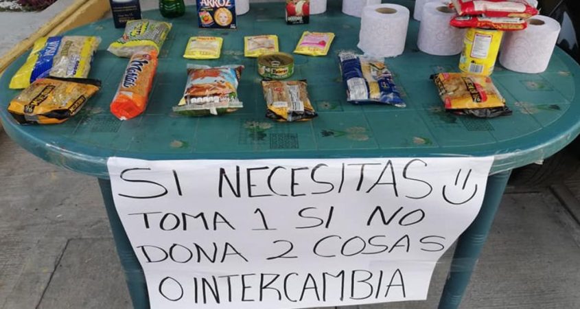 A través de redes sociales una de las familias de la sección Cimatario en la calle Mezquite, colocó una mesa en la parte exterior del domicilio, invitando a los vecinos que tengan oportunidad sumarse a esta causa, “si necesitas toma uno, si no dona dos cosas o intercambia”, se puede leer en un letrero colocado en el lugar.