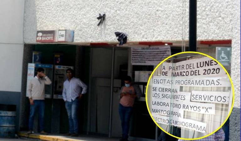 En letras grandes y en el cristal señalaron “A partir del lunes 30 de marzo del 2020 en citas programadas, se cierran los siguientes servicios: Laboratorio, rayos “x” mastografía y electromiografía”.