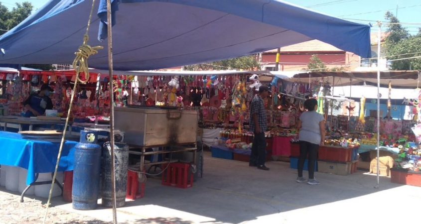 En algunas comunidades se continúan colocando pequeños tianguis donde los pobladores compran principalmente alimentos para evitar trasladarse a la cabecera municipal.Como cada lunes los comercios se colocaron a un costado del kiosko de la comunidad de San José de Mendoza, ubicada al norte del municipio, entre ropa, enseres domésticos, frutas y legumbres.