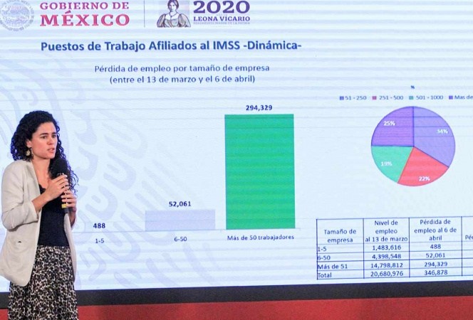 La titular de la Secretaría del Trabajo y Previsión Social (STPS), Luisa María Alcalde, informó que entre el 13 de marzo y el 6 de abril se han perdido 346 mil 878 empleos, en plena contingencia por la pandemia del coronavirus en México.De acuerdo a la funcionaria federal, quien expuso los nombres de las compañías que han despedido a empleados, el mayor número de despidos se concentra en los estados de Quintana Roo, Ciudad de México, Nuevo León, Jalisco y Estado de México.