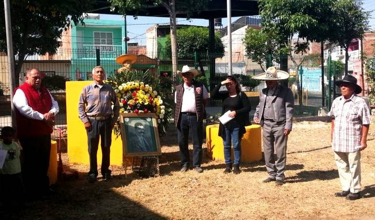 Encabezados por el dirigente de la Confederación Nacional Campesina (CNC) Alberto Alvarado, un grupo representativo colocó una ofrenda floral en su busto, ubicado en la Casa Agraria, y se entonó el Himno Agrarista.