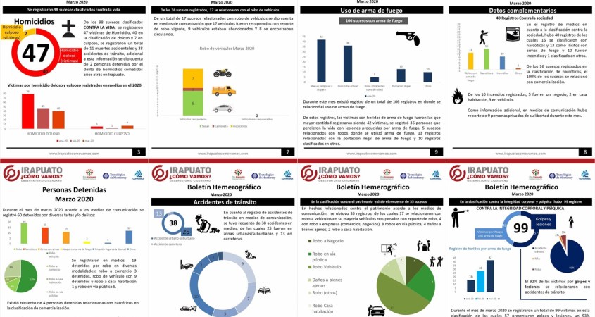 Existió registro de 42 personas que fueron heridas por arma de fuego este registro mostró un aumento del 50% referente al mes de febrero 2020.