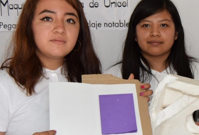 Bajo el lema “Pegamento confiable, reciclaje notable”, las alumnas Lorna Figueroa Ramírez, Akanne Martínez Ramírez y Jaqueline Paola Pérez Flores, diseñaron una máquina rectangular de un metro de alto, con un orificio por donde se introduce el unicel, el cual es triturado por unas aspas; contaron con la asesoría de los profesores Celia Eliza Labrada Razo y Miriam Alonso Meneses.