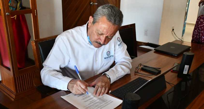 Esta firma permitirá que más de 300 irapuatenses inicien labores de desinfección y barrido manual en colonias y avenidas principales del municipio, como parte del primer paquete de contratación de apoyos ante la contingencia sanitaria por Covid-19.