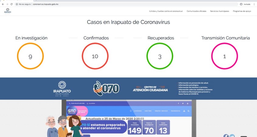 Como parte de las acciones para mantener informada a la ciudadanía sobre el Covid-19, el Gobierno Municipal creó el sitio coronavirus.irapuato.gob.mx.