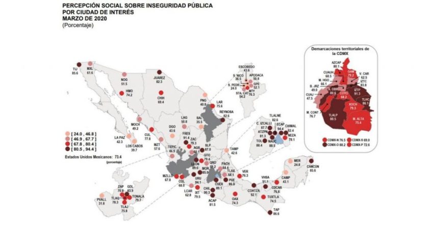 Esta cifra es considerablemente mayor en relación con el trimestre inmediato anterior, octubre-diciembre del 2019, cuando la estimación de percepción de inseguridad era del 80.1 por ciento.