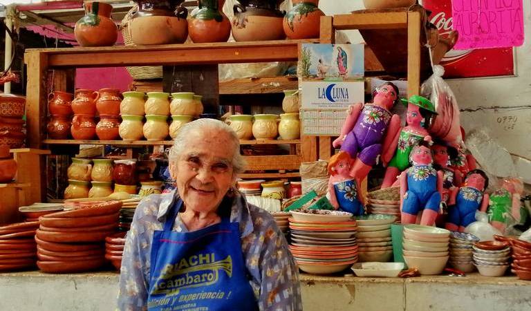 Aurora Gutiérrez Pérez de 101 años de edad es la única que sigue abriendo su local de cerámica ubicado dentro del Mercado Hidalgo, pues desde hace más de una semana todos los artesanos decidieron cerrar.