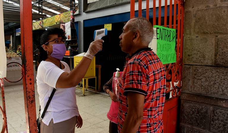 Previniendo que México entraría a la Fase 3, los presidentes de los mercados municipales adquirieron los termómetros para medir la temperatura de la clientela que entran por el acceso controlado de dichos centros de abastecimiento.