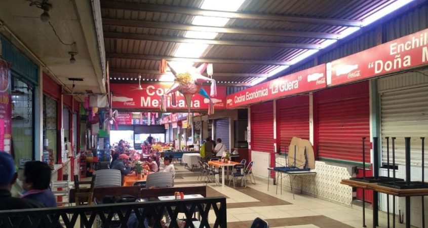 Los comerciantes del área de comida del mercado municipal se resisten a cerrar sus negocios al ser el único sustento familiar, sin embargo su ingreso ha bajado hasta en un 80%, puesto que la venta más fuerte eran las de los comensales en el lugar y no la venta para llevar.