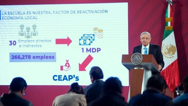 López Obrador explicó que hasta abril, el gobierno federal ha entregado 4 millones 927,pesos a 25,510 comités.