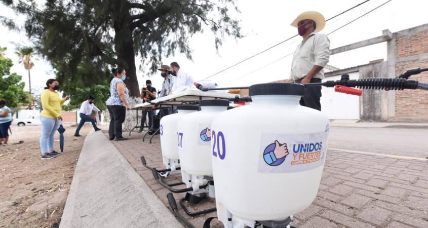 Habitantes de las comunidades de Aldama, Cuchicuato, San Miguel de Villalobos y otras localidades aledañas, se sumaron a las acciones de sanitización y barrido manual del programa de Empleo Temporal, que realiza el Gobierno Estatal y Municipal.