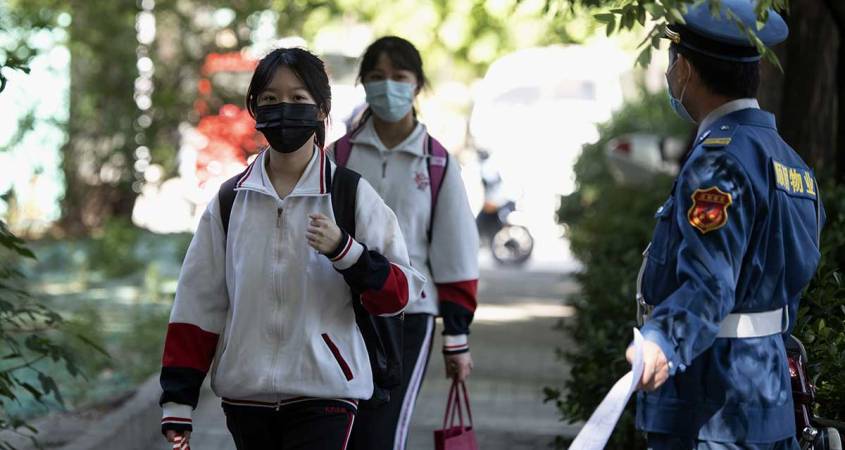 Alumnos de Pekín volvieron este lunes a las escuelas dotados con un brazalete electrónico que da la alerta en caso de fiebre, en momentos en que China teme una nueva oleada de contagios de Covid-19.