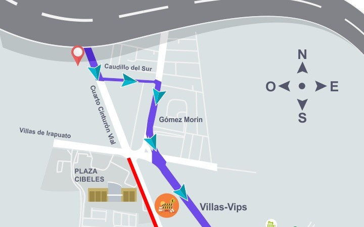 Si se viene del cuarto cinturón hacia Mariano J. García, se deberá tomar la calle Caudillo del Sur, girar a la derecha en el bulevar Gómez Morín, ingresar al bulevar Villas-Vips, incorporarse a Lázaro Cárdenas para, así, llegar a bulevar Mariano J. García, hacia el sur de la ciudad.