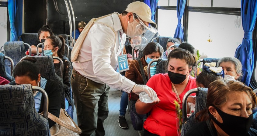 En diferentes rutas, elementos de Protección Civil adscritos a la Secretaría de Seguridad Pública, informaron de la vigencia del Bando Municipal, que mandata el uso obligatorio del cubre bocas en el transporte urbano, espacios públicos y establecimientos de servicios esenciales.