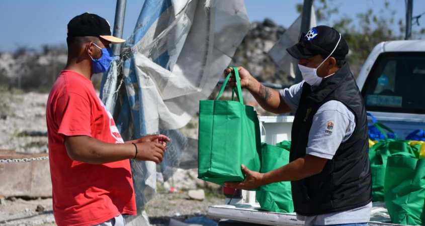 En apoyo a sectores vulnerables que, por la contingencia de coronavirus, suspendieron sus labores, personal del Gobierno Municipal realizó la entrega de despensas a pepenadores o recolectores del Relleno Sanitario.