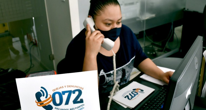 Mediante la línea de atención 072, personal de la Contraloría Municipal recibe y atiende reportes sobre el actuar de funcionarios públicos, además de trámites y servicios que presta el Municipio a la ciudadanía.