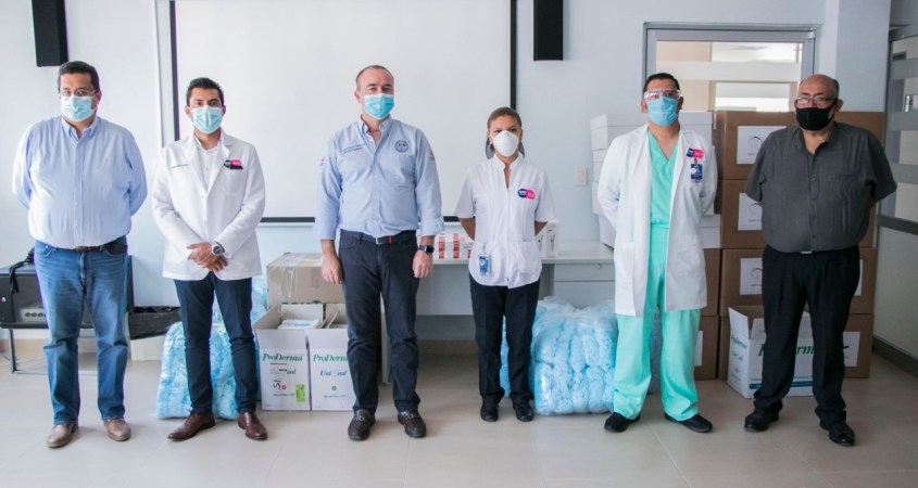Los paquetes entregados constan de 20 mil cubre bocas tricapa, 8 mil gorros quirúrgicos, 5 mil guantes de nitrilo, 4 mil cubrebocas N95, 3 mil botas quirúrgicas, 2 mil guantes quirúrgicos, 600 lentes de protección, 50 termómetros infrarrojos y 45 oxímetros de pulso.