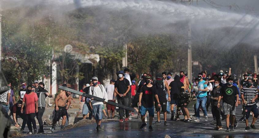La primera manifestación violenta empezó el lunes en la mañana en la comuna El Bosque, al sur de Santiago, donde con palos y piedras un grupo de menos de 50 personas enfrentó a la policía antimotines.