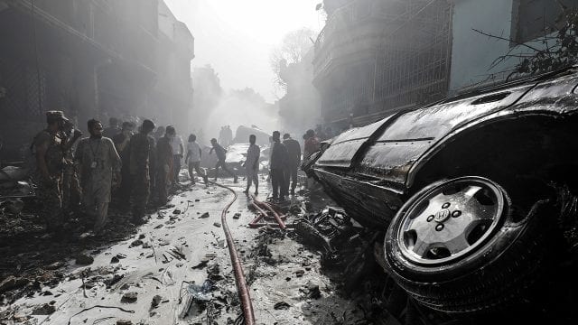 Los servicios de rescate paquistaníes llegaron rápidamente al sitio del accidente, que parecía ser una zona densamente poblada de Karachi.