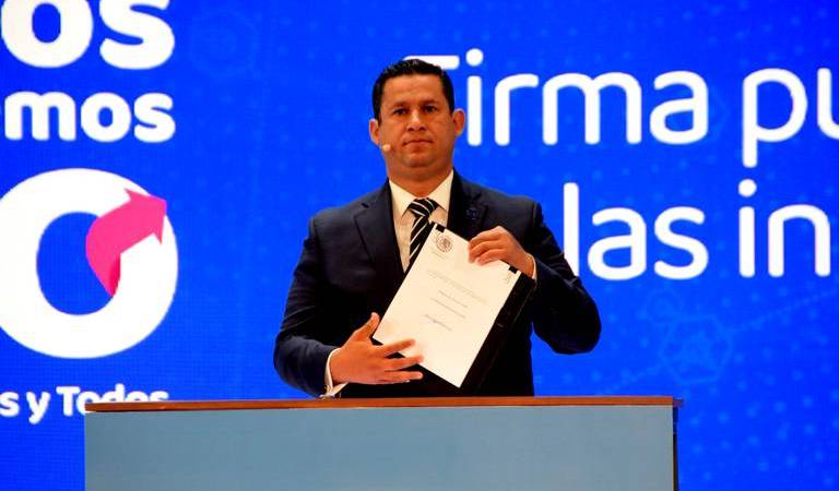 Durante la presentación del Plan, el mandatario estatal firmó la solicitud de deuda dirigida al Congreso local, al igual que la petición para que aumente el Impuesto Sobre la Nómina del 2.3 al 3 por ciento, medida que, dijo, es apoyada por el sector empresarial guanajuatense.