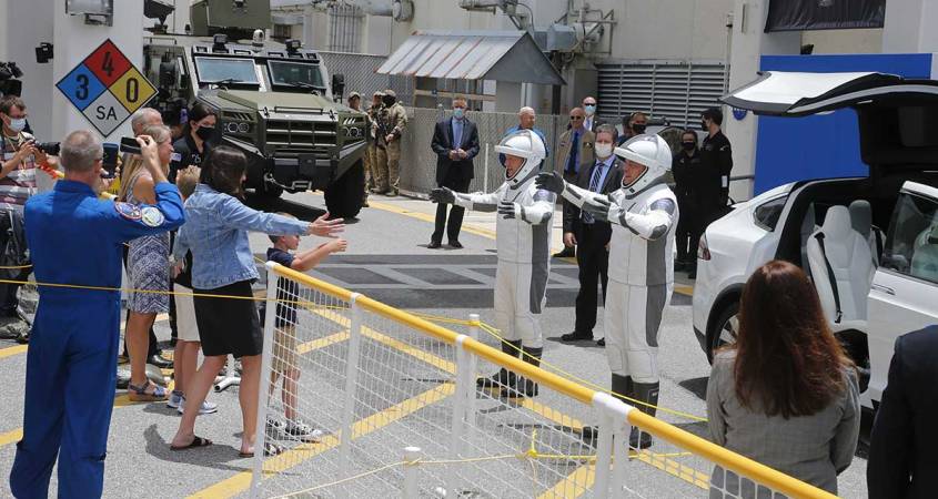 A unas horas del histórico despegue de la cápsula Crew Dragon con dos astronautas de la NASA a bordo, un contado grupo de personalidades está presente en las instalaciones para verlo y apenas un puñado de reporteros cubrirá el evento debido a la emergencia sanitaria.