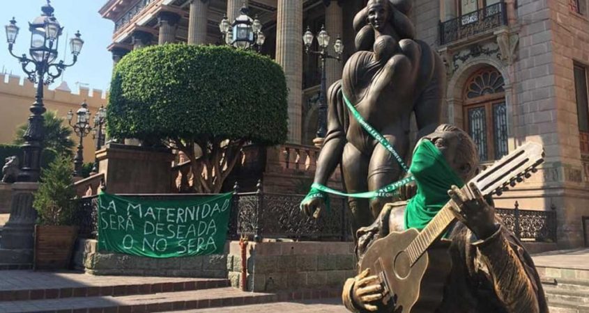 Previo a la sesión de las Comisiones Unidas fue colocada una manta en la entrada al Congreso del Estado por parte de colectivos feministas con la leyenda “Mi cuerpa, mi decisión”, la cual fue retirada por personal del Legislativo.