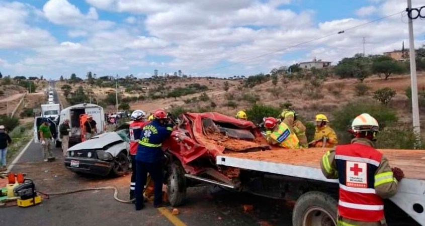 Un accidente registrado la mañana del sábado en la comunidad de Los Aguilar, entre los limites de la capital y Dolores Hidalgo, dejó como resultado cinco personas fallecidas.