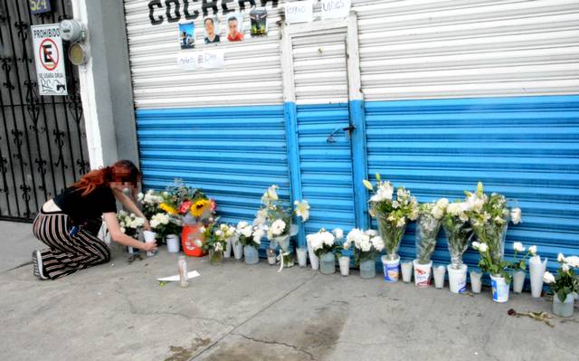 Luego del ataque al taller Becca Cars ubicado en la calle Albino García de la colonia Las Fuentes, donde los hermanos Becerra Diego, Ulises y Rogelio perdieron la vida el pasado sábado por la tarde, familiares y amigos han acudido a las instalaciones para colocar flores blancas y girasoles, así como veladoras en memoria de los jóvenes.