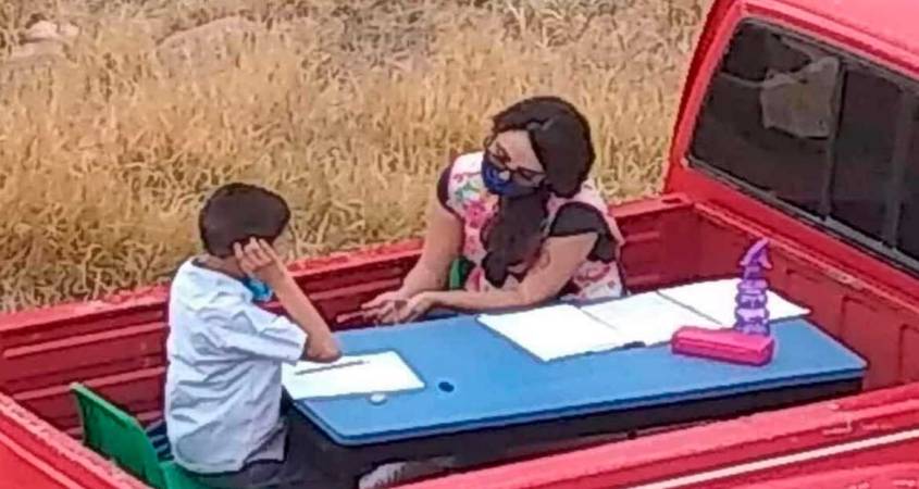 En redes sociales, en Twitter específicamente, se ha difundido una imagen que deja ver la gran vocación de una maestra cuando toma cartas en el asunto con el fin de que sus alumnos no se queden sin aprender durante estos tiempos de pandemia.