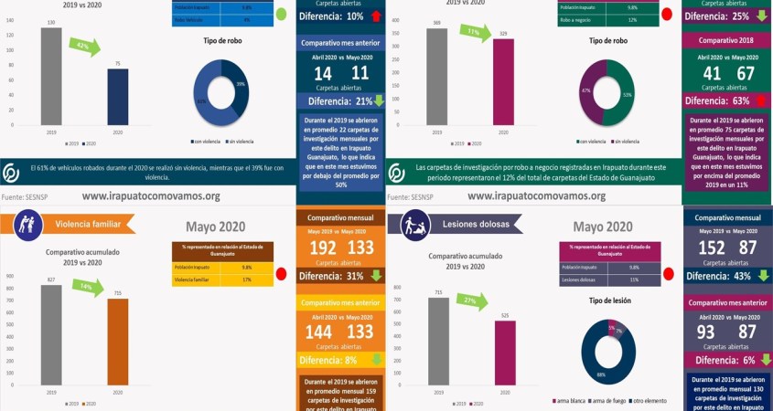 Durante el mes de mayo 2020 no hubo registro de carpetas de investigación por estos delitos en Irapuato.