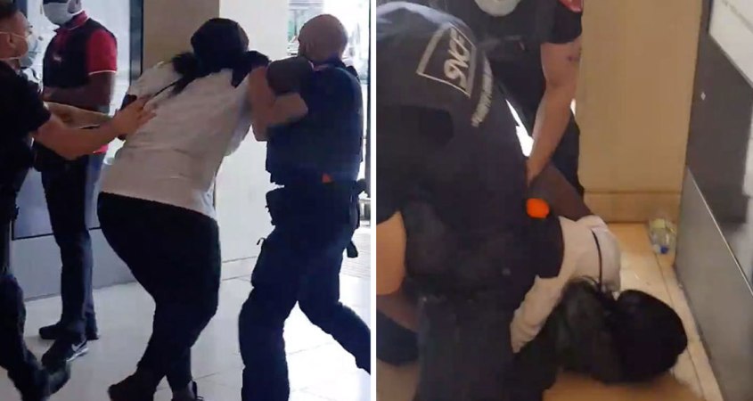 En el video también se observa cómo la jalan y la tiran al suelo mientras la mujer grita “No me empujes”. Luego de que dos agentes la inmovilizan presionando en el estómago, la mujer comienza a gritar de dolor.