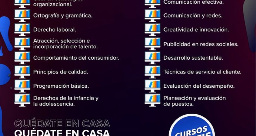 Entre los cursos disponibles se encuentran Tecnologías de Información para negocios, Gestión Estratégica Organizacional, Principios de Calidad, Programación Básica, Derecho Laboral, Comunicación Efectiva, Comunicación y Redes, Creatividad e Innovación, Publicidad en Redes Sociales, Desarrollo Sustentable, Evaluación del Desempeño, entre otras.