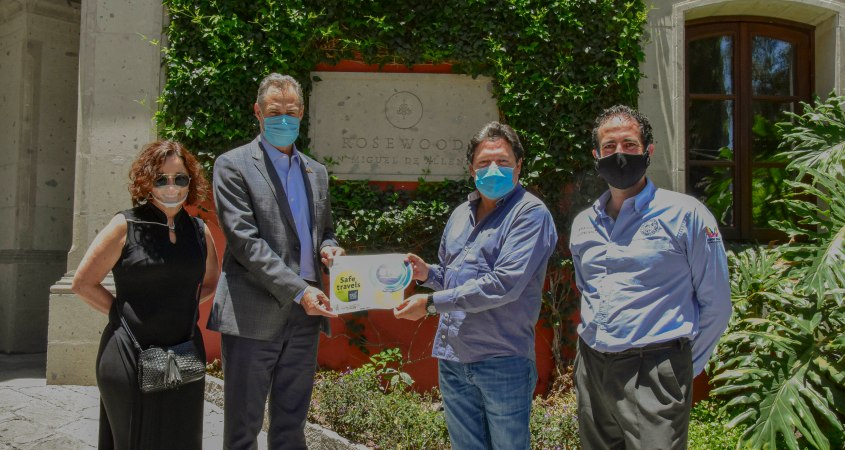 El secretario de Turismo del Estado, Juan José Álvarez Brunel, entregó el distintivo “Guanajuato sano”, acompañado de Laura Torres, presidenta del Consejo Turístico, Edgar Zamudio, director del Consejo y Francisco Garay, director de Desarrollo Económico, Relaciones Internacionales y ONG`S. Los hoteles ‘Casa No Name’, ‘Matilda’, ‘Rosewood’ y ‘Casa de Los Soles’, ya tienen los dos sellos, que dicho por Álvarez Brunel “representa el trabajo conjunto del sector turístico; en dónde establecemos las buenas prácticas que requiere cualquier establecimiento del sector turismo. Para poder recibir a los visitantes”.
