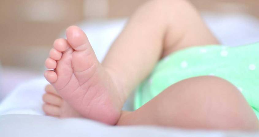 La bebé tenía pants verdes y estaba envuelta en una cobija amarilla.