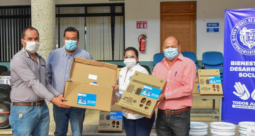 Como parte del Programa de Infraestructura educativa, se entregaron 17 kits a escuelas de la zona rural y urbana del municipio, de los niveles preescolar, primaria y secundaria, que contiene: un tapete sanitizante, 4 litros de sanitizante, un atomizador, 300 cubrebocas, 100 guantes, un termómetro infrarrojo y alcohol en gel en presentación de 1L.