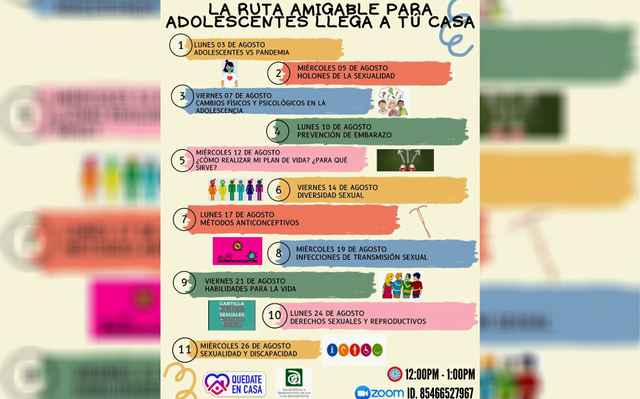Todos los interesados de entre 12 y 19 años, pueden sumarse a la transmisión vía zoom con ID 85466527967, en las fechas citadas de las 12:00 a las 13:00 horas.