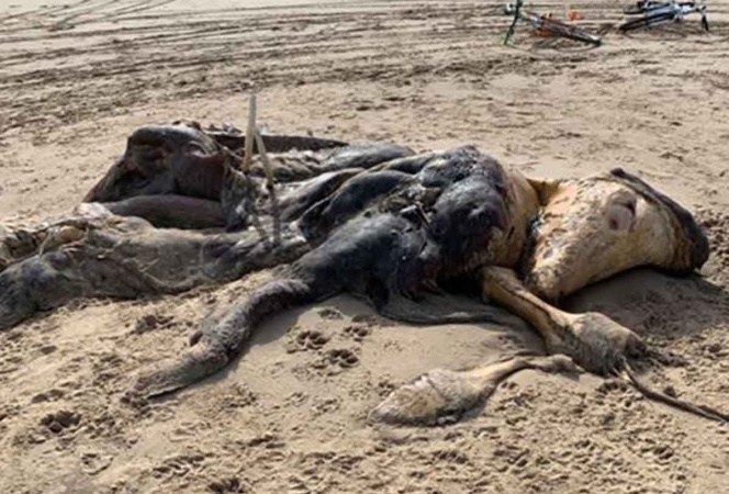 Habitantes de un pequeño poblado de Reino Unido quedaron completamente asustados luego de encontrar el cadáver de un extraño animal que no parece tener forma de algo conocido.