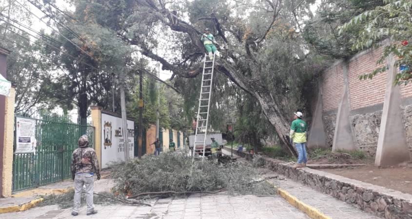 El árbol reportado tiene unos 200 años de antigüedad, presentó reblandecimiento en sus raíces, debido al peso de su copa, las medidas reducidas del terreno en el que se plantó (menor a 1 metro y medio) y por la lluvia constante, provocó la inclinación del árbol.