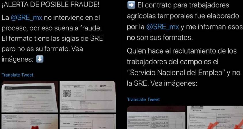 “Tienen números de teléfonos privados que no corresponden a una empresa debidamente constituida y registrada ante la Secretaría del Trabajo, de reclutamiento y para llevar trabajadores a Canadá; poFraude Empresa Trabajo r ello es que estamos alertando, porque se tiene información de que pretenden reclutar a unos 600 trabajadores en comunidades de Jalisco, Michoacán, Guanajuato, Guerrero o Oaxaca, entidades con alto flujo migratorio y una comunidad importante en Estados Unidos y Canadá y este tipo de trámites son gratuitos, no deben cobrar y los formularios viene el nombre del contratante y del contratado.