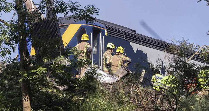 La policía recibió la noticia de que un tren había descarrilado cerca de Stonehaven, una ciudad a 15 kilómetros al sur de Aberdeen, a las 0940 a.m. del miércoles.