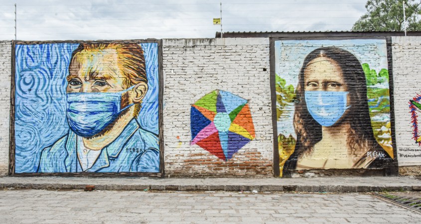 El mural “La historia del Arte y el Covid” de 3 x 4 metros, es de Juce y está en la Fuego Nuevo. El artista Persak pintó los murales de Frida en la colonia San Antonio, en la calle 28 de abril y también plasmó a Van Gogh y la Mona Lisa, en la calle Purísima, de las Cuevitas; en cada uno hubo 2 aprendices.