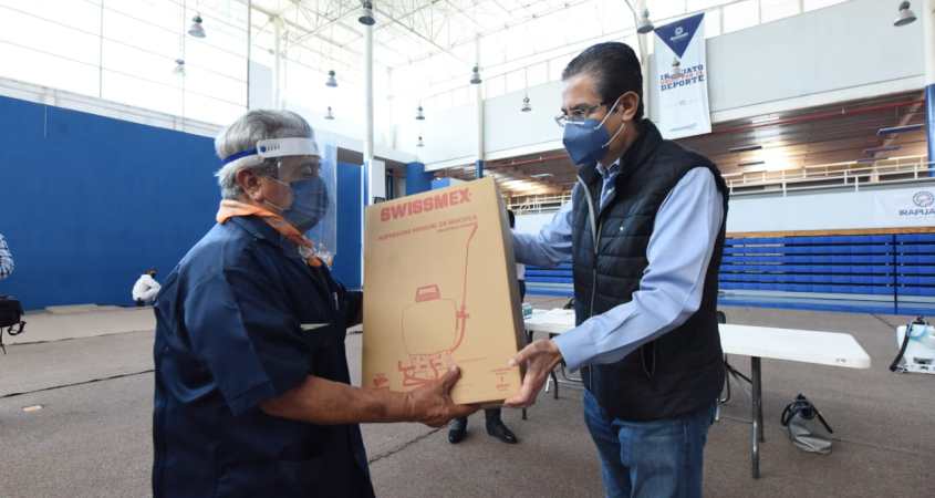 Para ofrecer mayor seguridad en la salud de los clientes y personal de tianguis y mercados, la Dirección de Mercados en coordinación con la Dirección de Salud Municipal, entregó lavamanos, termómetros y mochilas aspersoras para sanitizar.