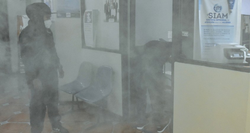 En el DIF nebulizaron desde el módulo de entrada de visitantes, Trabajo Social, Procuraduría, Dirección, Contabilidad, el área de Psicología, Terapia Física, atención médica y de hogares de corazón.