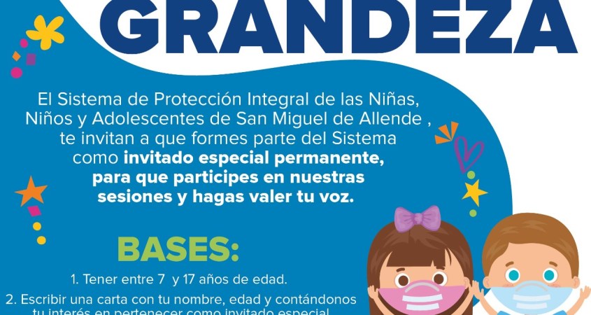 La Secretaría Ejecutiva del Sistema de Protección Integral de las Niñas, Niños y Adolescentes (SIPINNA) invita a menores sanmiguelenses a formar parte de la convocatoria “Voces con Grandeza”.